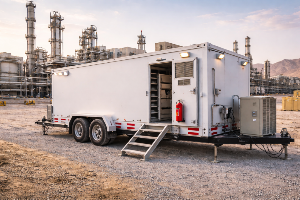 The project delivers portable, field-ready emergency power and shelter solutions to support Aramco operational sites in Saudi Arabia, including Khuris, Haradh, Dhahran, and Ras Tanura. Delivered by BAZY through the Electromechanical business unit and aligned with Aramco’s approved manufacturer list, the engagement covers end-to-end engineering & design, supply, installation, testing, and commissioning of complete trailer systems. Each unit is equipped with integrated infrastructure including DC backup power systems (rectifiers and high-capacity batteries), HVAC and ventilation, wheeled trailer shelters, transformers, lighting systems, and fire alarm systems—ensuring rapid deployment and reliable operation in demanding environments.